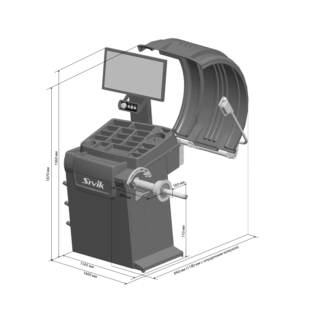 • Вал станка максимально смещен к оператору. Сохранен большой вылет вала - 284 мм. Удобно обслуживать даже самые большие и широкие колеса.