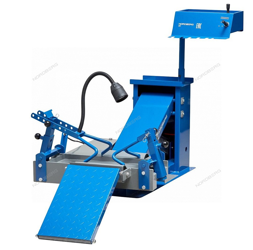 Пневматический борторасширитель NORDBERG D5 для шин грузовых автомобилей с установочным столом и подъемником разработан для фиксации шины, расширения ее бортов и подъема во время ремонта.