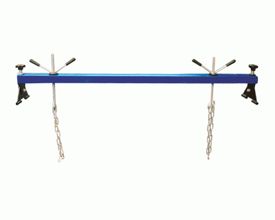 Одной из особенностей поддержки AE&T T63105 является возможность подвешивания двух автомобильных механизмов. Такое устройство выполнено из прочного и толстого металла. Его удерживающие узлы имеют ручные винтовые механизмы, которые дают возможность быстро изменять высоту поднятия груза. Регулировочные болты размещены по обе стороны балки. Они позволяют точно позиционировать груз по горизонтали. Металлические цепи каждого из узлов надежно и прочно фиксирует подвешенный механизм.