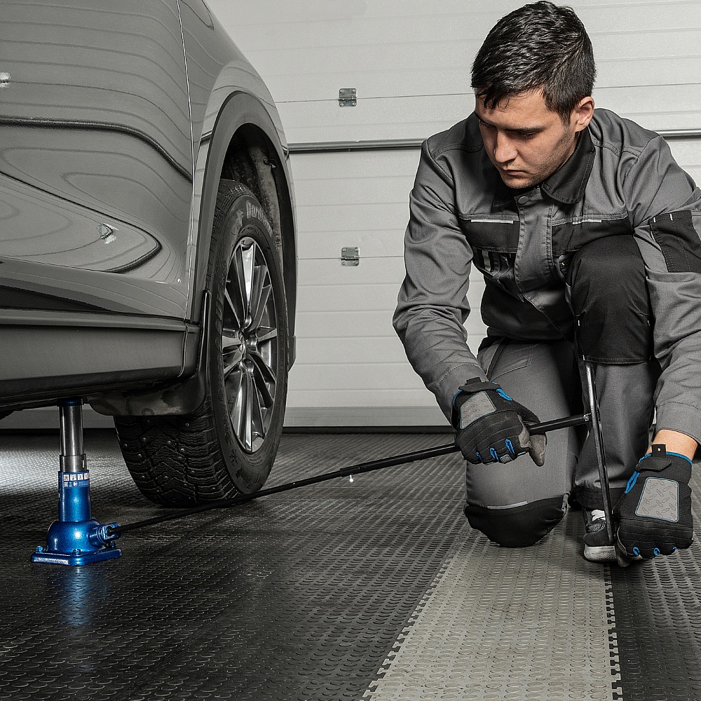 - Удобная транспортировка — компактный домкрат весом 3,93 кг легко помещается в багажник автомобиля.
