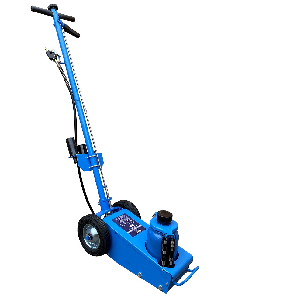 Пневмогидравлический домкрат Г/П - 35 тонн.Прочная и надежная конструкция. Мобильный. Закаленный шток цилиндра обеспечивает надежность работы. 4 возвратные пружины для быстрого опускания домкрата. Разъем для подключения пневмосети. Клапан для быстрого опускания домкрата. Фиксатор угла наклона рукоятки. Угол наклона рукоятки 0-90грд. Удобная ручка для переноски домкрата. В комплекте 4 удлиняющих адаптера: 25 мм, 25 мм, 50 мм, 100 мм. Высота подхвата: 250-495 мм с адаптером 595 мм.<br /><br />Технические особенности ES-1035 пневмогидравлический подкатной домкрат:<ul><li>Прочная и надежная конструкция</li><li>Мобильный - легко перемещается благодаря металлическим обрезиненным колесам по любой поверхности</li><li>Хромированный и закаленный шток цилиндра обеспечивает надежность работы<br /></li><li>4 возвратные пружины для быстрого опускания домкрата</li><li>Разъем для подключения пневмосети с европейским штуцером</li><li>Клапан для быстрого опускания домкрата</li><li>Угол наклона рукоятки 0-90 грд</li><li>Фиксатор угла наклона рукоятки</li><li>Удобная ручка для переноски домкрата</li><li>В комплекте 4 удлиняющих адаптера: 25 мм, 25 мм, 50 мм, 100 мм</li><li>Современный уровень безопасности</li><li>Длительный срок службы<br /></li><li>Выгодная цена</li><li>Емкость бака для заправки 1,5 л. гидравлическое масло</li></ul>