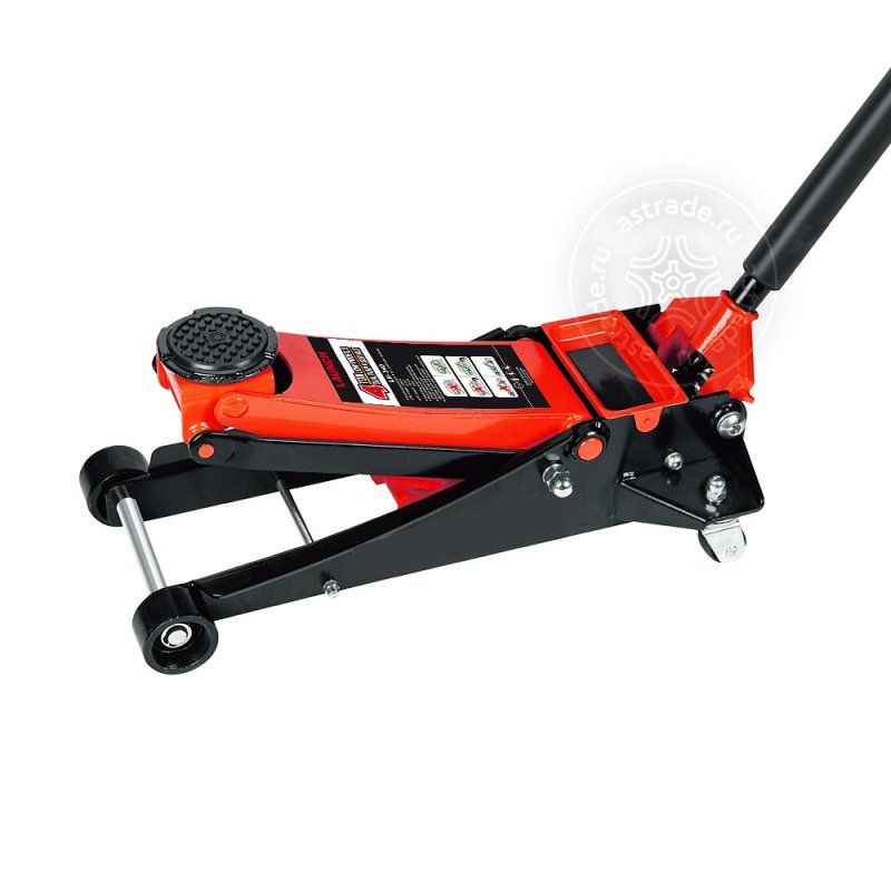 Четыре широких стальных колеса позволяют легко перемещать домкрат и подкатывать его непосредственно под кузов автомобиля.