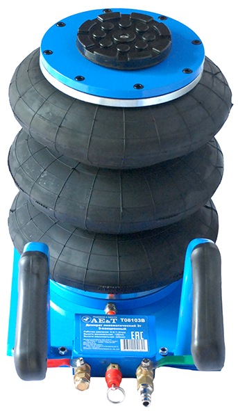 <p> Домкрат пневматический 3-секционный T08103B максимальной грузоподъёмностью 3т.</p><p>  </p><p> Модель T08103B отлично подойдёт автосервисам и СТО любого уровня, потому что оснащена входами как для работы от компрессора напрямую, так и от магистрали, что устанавливаются, как правило, в больших мастерских. При этом удобные ручки и телескопическая подъёмная система обеспечивают не только комфортное перемещение техники, но и компактные размеры, чтобы удобно было и хранить, и устанавливать под груз. Можно использовать с адаптером 100 мм, который приобретается отдельно.</p><p> <strong><br> </strong></p><p> <strong>Преимущества:</strong></p><ul><li>Высокая надёжность (прошёл стандартное тестирование, поставляется с годовой гарантией)</li><li>Оборудован перепускным клапаном.</li><li>Заявленное рабочее давление 8-10 атм., но хорошо справляется с подъёмом и при 6-8 атм.</li><li>Очень лёгкий для изделия своего класса: всего 15 кг в сборе.</li></ul><p> <strong> </strong></p><p> <strong>Обратите внимание:</strong></p><ul><li>Ни в коем случае не превышайте максимальную нагрузку.</li><li>Не передвигайте 3-секционный пневматический домкрат T08103B с грузом на нём.</li><li>Не используйте его при температурах ниже 0 или выше +50°C.</li><li>Для работы обязательно выберите прочную, ровную поверхность.</li></ul><p>  </p><p> <br></p>