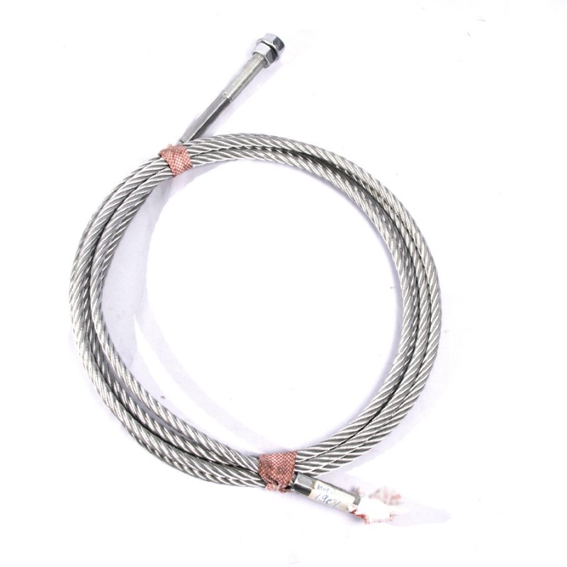 Трос подъема и синхронизации платформ. Изготовлен из прочного стального каната с металлическим сердечником, долговечен, выдерживает тяжелые нагрузки. В конструкции подъемника используется четыре троса разной длины; Длина троса: 5540мм. Диаметр троса: 9,5мм. Диаметр шпилек: 20мм. (размер ключа 29мм) Длина шпильки: 100мм.