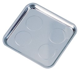 Лоток изготовлен из нержавеющей стали, что препятствует образованию коррозии. Удобен при работе с различными агрегатами позволяет надежно хранить демонтированный крепеж. Размер лотка: 330 x 250 x 25 мм