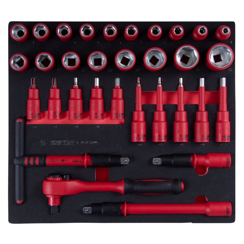KING TONY Набор торцевых диэлектрических головок с принадлежностями 1/2", шестигранные, 8-32 мм, ложемент, 32 предмета KING TONY 9-45VE02MRV