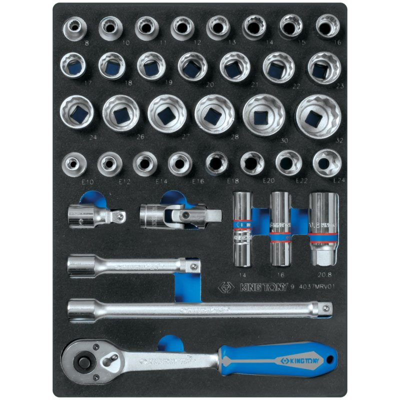 KING TONY Набор торцевых головок 1/2" с принадлежностями, двенадцатигранные, ложемент, 37 предметов KING TONY 9-4037MRV01 купить в Новосибирске цена ✅ - Все для СТО