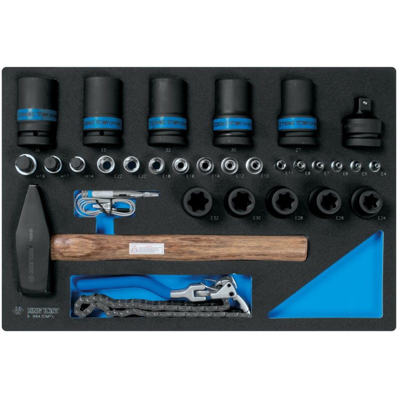 KING TONY Набор ударных головок 1", головок Torx Е-стандарт, молоток, съемник, тестер, ложемент, 30 предметов KING TONY 9-99430MFV