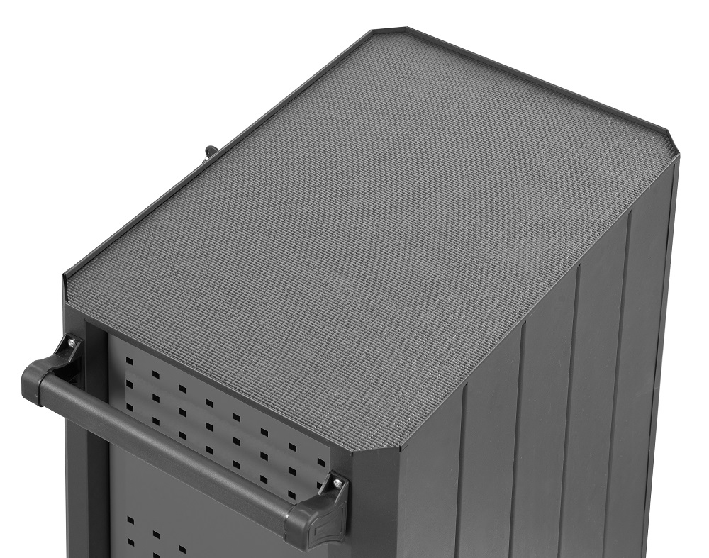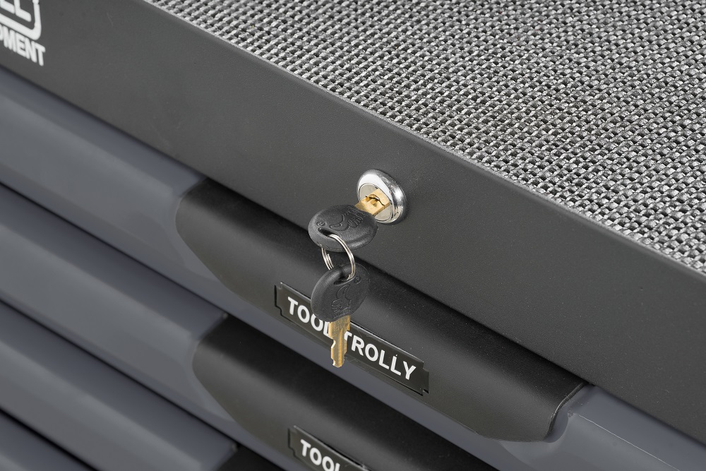 Коврик из специального материала на верхней полке позволяет  содержать инструмент в чистоте и предотвращает соскальзываение предметов  на пол
