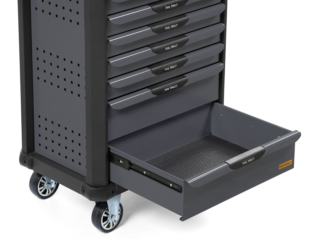 KraftWell KRW-T7D— это воплощение современных технологий организации  рабочего пространства. Профессиональная тележка с семью вместительными  ящиками создана специально для тех, кто ценит порядок и эффективность в  работе.