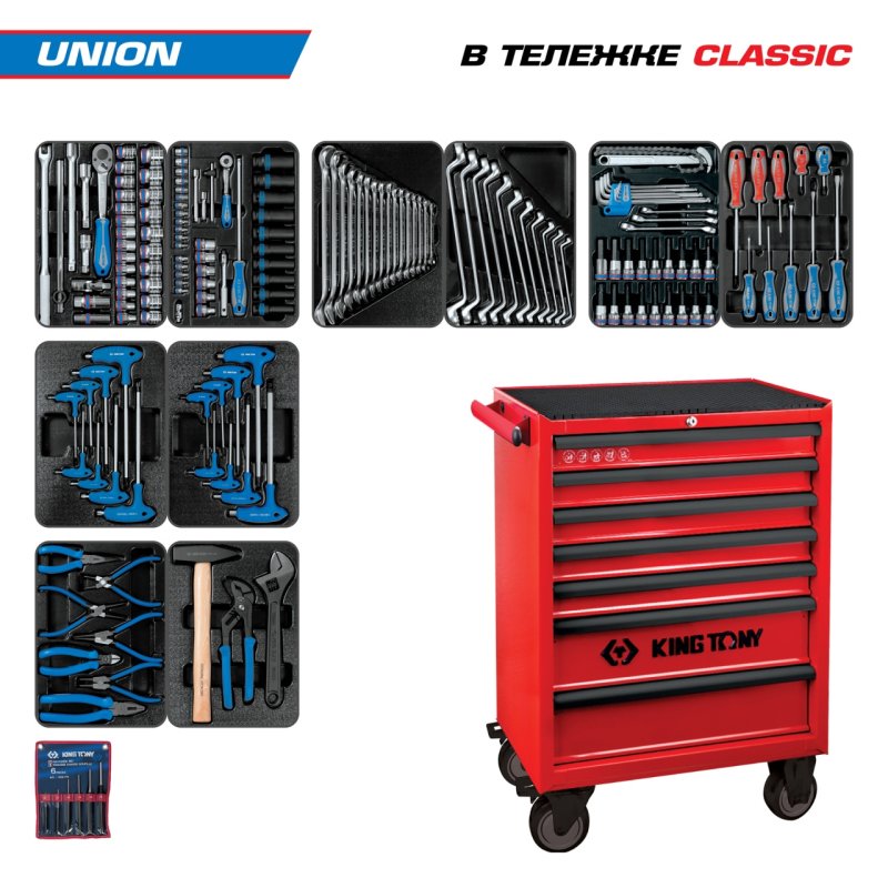 Набор инструментов 173 предмета, "UNION", в красной тележке KING TONY 934-000MR купить в Новосибирске цена ✅ - Все для СТО