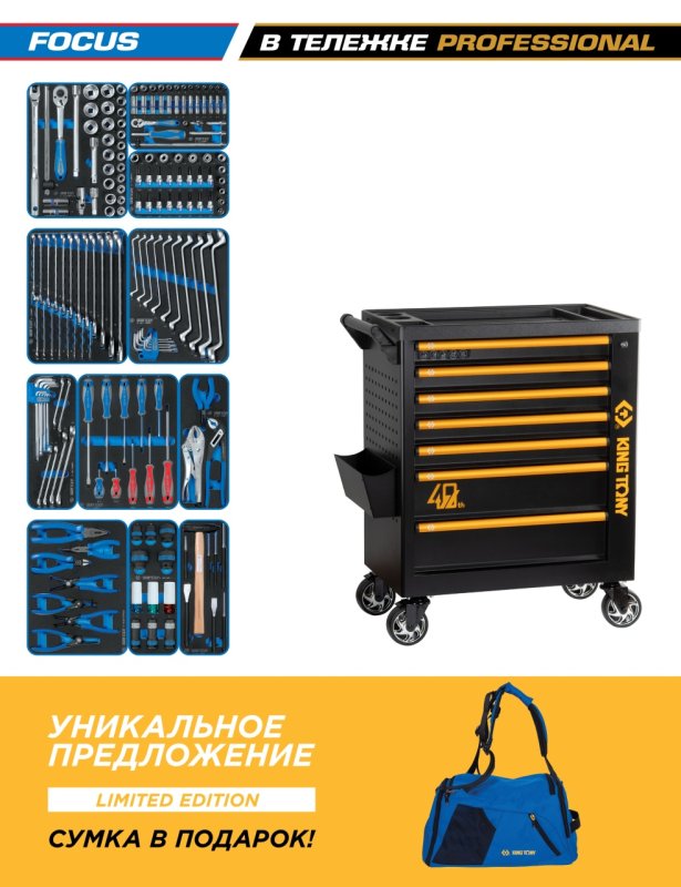 Набор инструментов 188 предметов, "FOCUS", в черной тележке KING TONY 9G38-188MRV40 купить в Новосибирске цена ✅ - Все для СТО