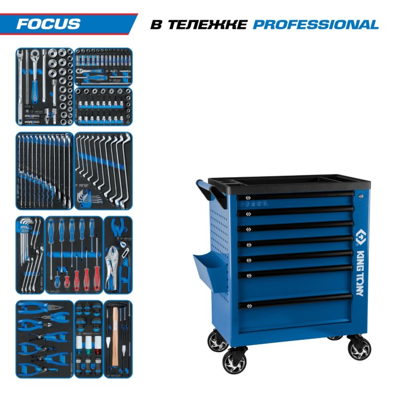 Набор инструментов 188 предметов, "FOCUS", в синей тележке KING TONY 9G38-188MRVB купить в Новосибирске цена ✅ - Все для СТО