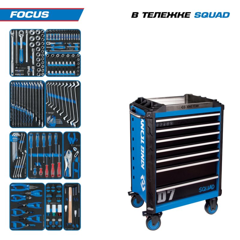 Набор инструментов 188 предметов, "FOCUS", в синей тележке KING TONY 9SQ31-188MRV купить в Новосибирске цена ✅ - Все для СТО