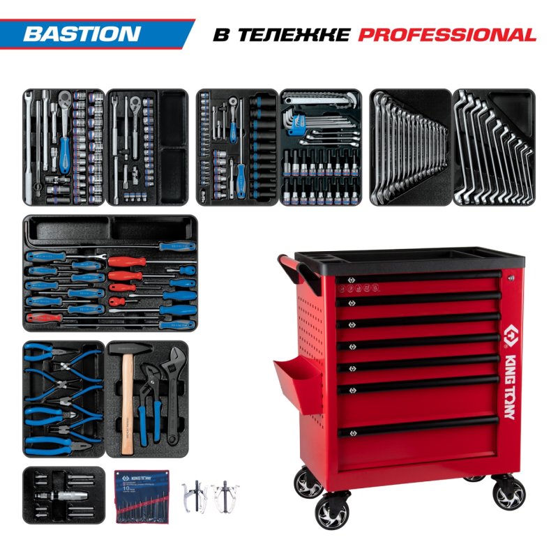 Набор инструментов 204 предмета, "BASTION", в красной тележке KING TONY 9G38-100MRR купить в Новосибирске цена ✅ - Все для СТО