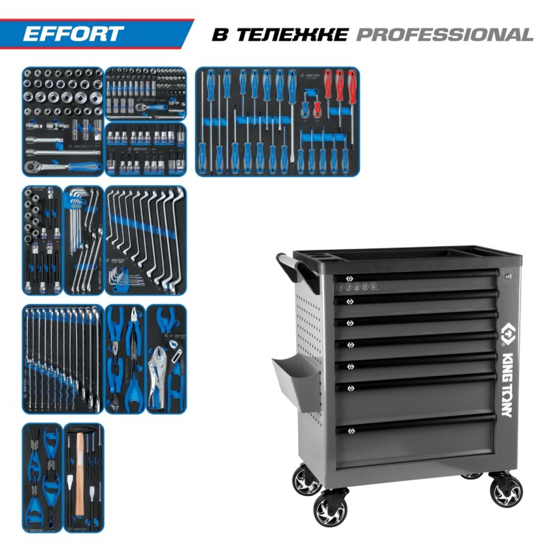 Набор инструментов 235 предметов, "EFFORT", в серой тележке KING TONY 9G38-235MRVG купить в Новосибирске цена ✅ - Все для СТО