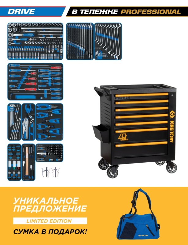 Набор инструментов 251 предмет, "DRIVE", в черной тележке KING TONY 9G38-251MRV40 купить в Новосибирске цена ✅ - Все для СТО