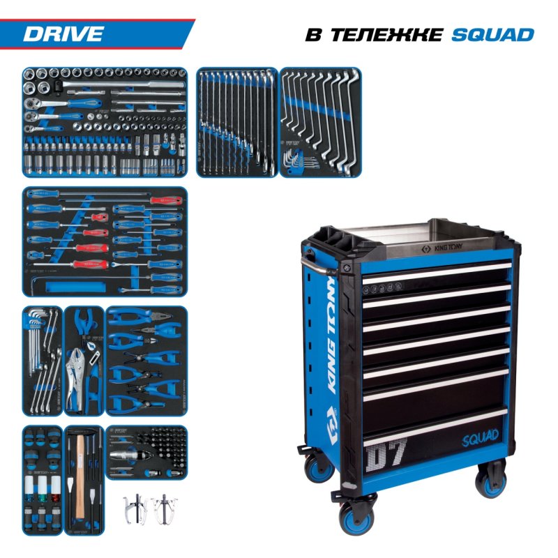 Набор инструментов 251 предмет, "DRIVE", в синей тележке KING TONY 9SQ31-251MRV купить в Новосибирске цена ✅ - Все для СТО