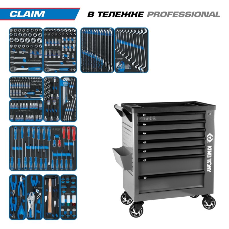 Набор инструментов 286 предметов, "CLAIM", в серой тележке KING TONY 9G38-286MRVG купить в Новосибирске цена ✅ - Все для СТО
