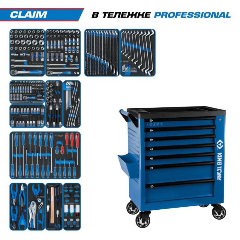 Набор инструментов 286 предметов, "CLAIM", в синей тележке KING TONY 9G38-286MRVB купить в Новосибирске цена ✅ - Все для СТО