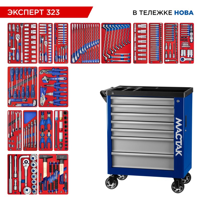 Набор инструментов 323 предмета, "ЭКСПЕРТ 323", в синей тележке МАСТАК 50-07323B купить в Новосибирске цена ✅ - Все для СТО