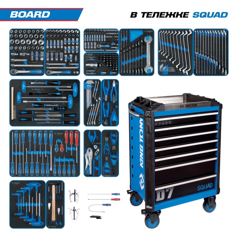Набор инструментов 325 предметов, "BOARD", в синей тележке KING TONY 9SQ31-325MRV купить в Новосибирске цена ✅ - Все для СТО
