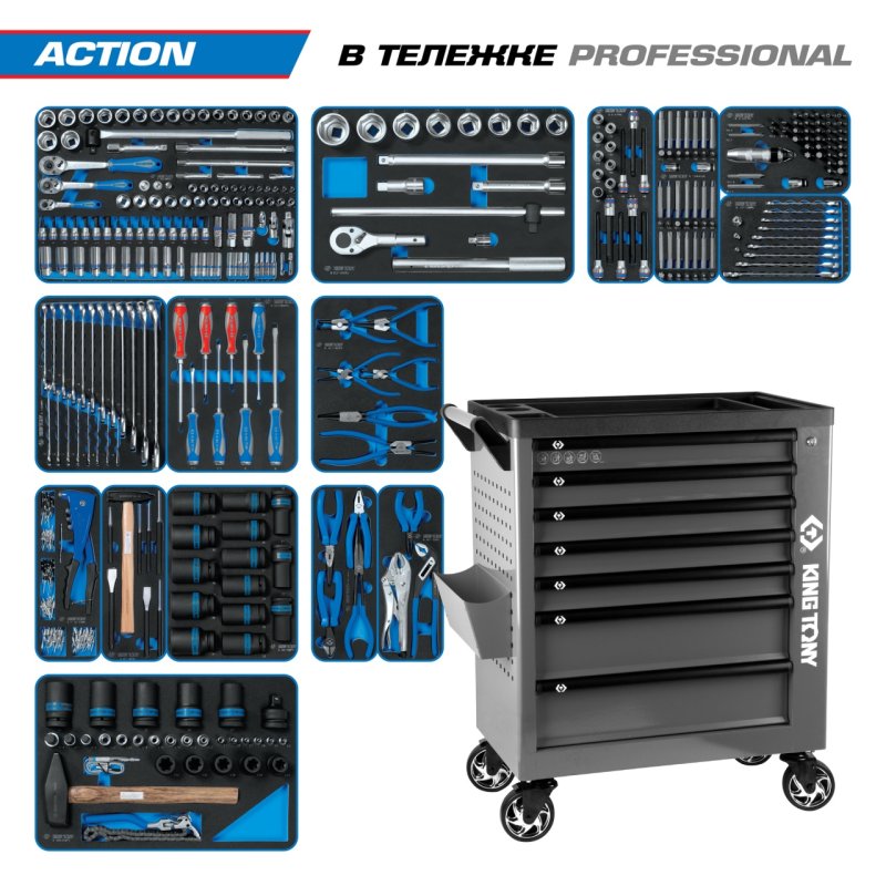 Набор инструментов 327 предметов, "ACTION", в серой тележке KING TONY 9G38-327MRVG купить в Новосибирске цена ✅ - Все для СТО