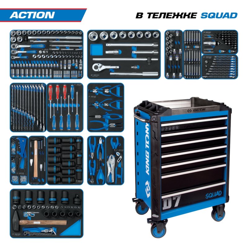 Набор инструментов 327 предметов, "ACTION", в синей тележке KING TONY 9SQ31-327MRV купить в Новосибирске цена ✅ - Все для СТО