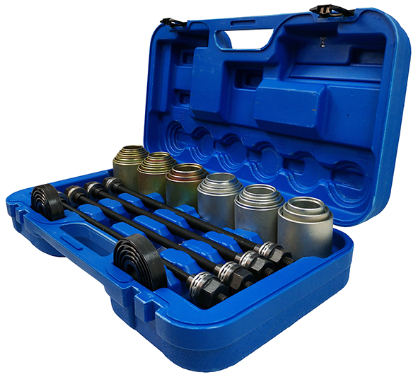 Набор для монтажа и демонтажа подшипников и сайлентблоков универсальный позволяет производить замену подшипников, сайлентблоков и втулок.