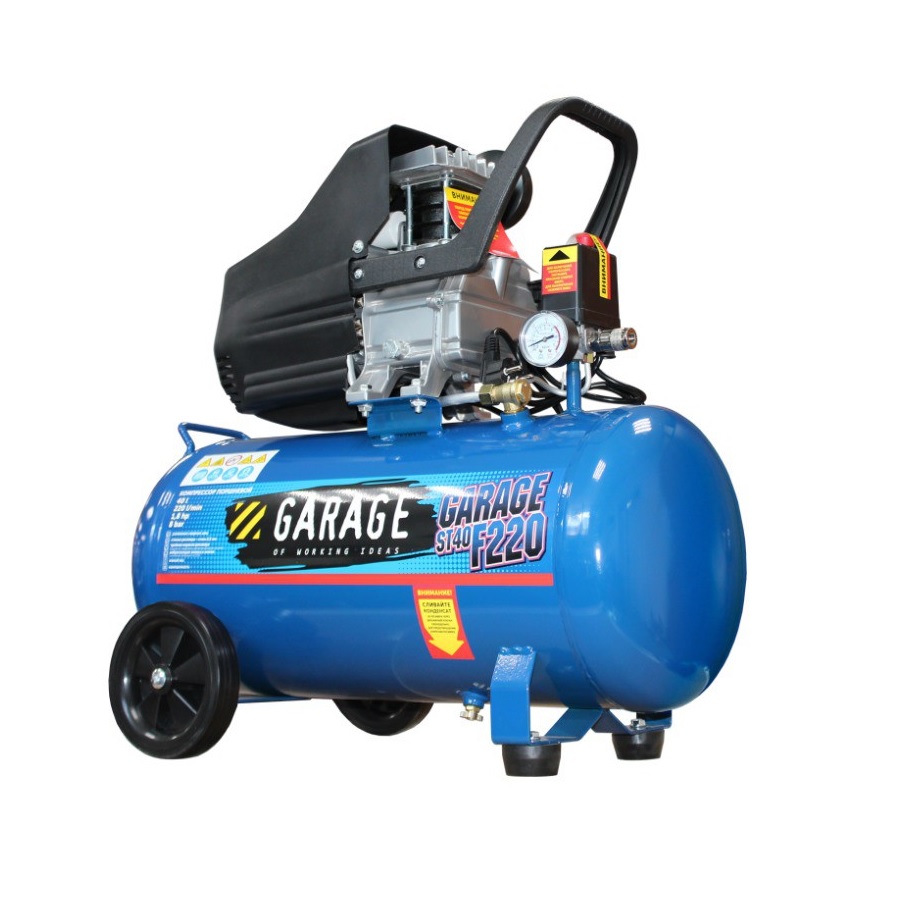 Компрессор Garage ST 40.F220/1.3  отличается высоким качеством изготовления и будет полезен вам на даче в гараже или в доме. Производительности 220 л/мин, а также ресивера (40л) будет достаточно для того, чтобы работать с большинством видов самых распространенных пневмоинструментов:  степлеров, краскораспылителей, продувочных, промывочных пистолетов.