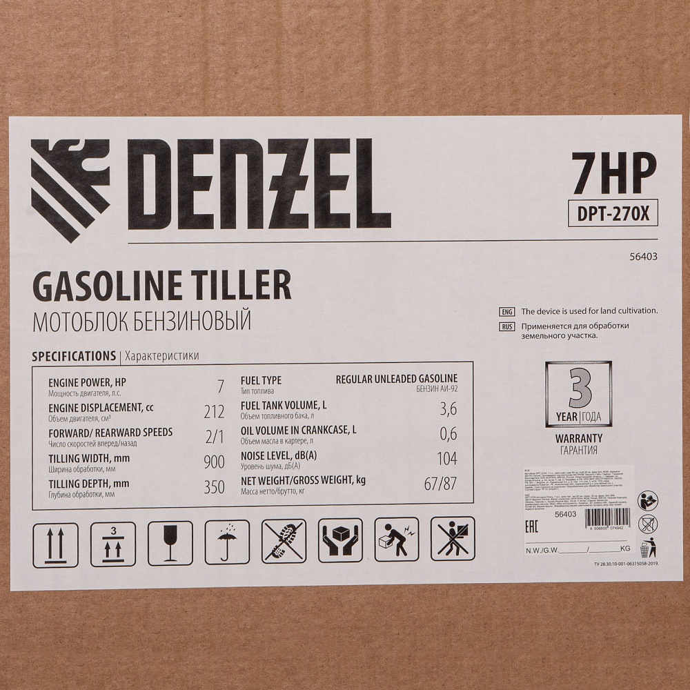 Мотоблок DPT-270X, 7 л.с, дисковое сцепление, ширина 90 см, глубина 35 см, фрез 3 х 4, ВОМ, передачи 2В/1Н Denzel купить в Новосибирске цена ✅ - Все для СТО