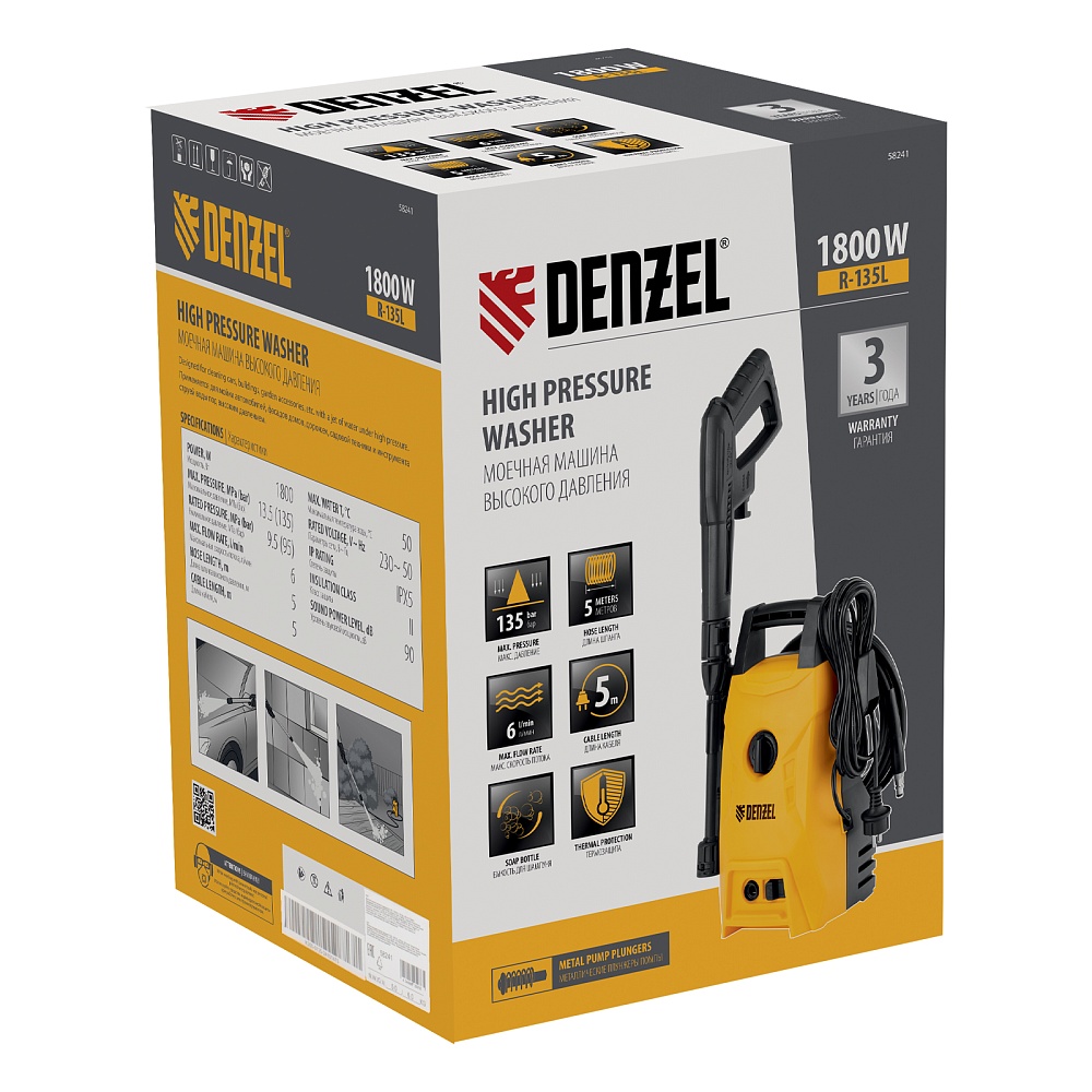 Моечная машина высокого давления R-135L, 1800 Вт, 135 бар, 360 л/ч Denzel купить в Новосибирске цена ✅ - Все для СТО
