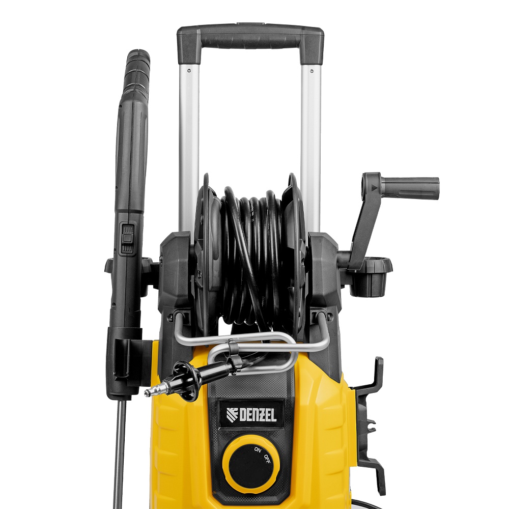 <p>Моечная машина высокого давления Denzel R-180iD 58266 мощностью 2000 Вт, с барабаном и асинхронным двигателем, используется для мытья дорожек, тротуаров, фасадов зданий, автомобилей, окон, садовой мебели и инвентаря. Максимальное давление составляет 180 бар, производительность — 420 л/ч. Мойка подключается к водопроводной сети, а в случае ее отсутствия может забирать воду из любого открытого резервуара, работая в режиме самовсасывания. Надежная алюминиевая помпа со стальными плунжерами обеспечивает стабильное давление даже при длительном интенсивном использовании. Мойка высокого давления незаменима на дачном участке.</p><h2>Преимущества</h2><ul><li>Надежность — асинхронный двигатель устойчив к нагрузкам и не требует сложного обслуживания.</li><li>Максимально эффективное очищение — к мойке прилагается внешний пенокомплект с функцией улучшенного пенообразования, быстросъемное крепление позволяет устанавливать его на пистолет одним движением.</li><li>Выбор оптимального угла распыления — машина поставляется с 3 насадками: 0°, 25° и 40°.</li><li>Быстрая подготовка к работе — быстросъемный адаптер упрощает подключение шланга подачи воды.</li><li>Качественная фильтрация — посторонние частицы задерживаются на входе, что защищает помпу от поломки.</li><li>Защита от случайного пуска — перед началом работы необходимо разблокировать рычаг моечного пистолета.</li><li>Защита от превышения допустимого давления — машина оснащена перепускным клапаном, пневматическое реле останавливает насос при отпущенном рычаге пистолета и запускает после нажатия на курок.</li><li>Термозащита — производитель предусмотрел датчик температуры, электродвигатель автоматически отключается при перегреве.</li><li>Максимально комфортное передвижение — длина шнура питания составляет 5 м, длина шланга высокого давления увеличена до 8 м.</li><li>Удобное использование — функциональный барабан подключен к магистрали высокого давления, поэтому вы можете разматывать и убирать шланг на барабан, не отсоединяя его от мойки.</li><li>Степень защиты IPX5 — внутренние компоненты надежно изолированы от попадания воды.</li><li>Мобильность — благодаря колесам и телескопической рукоятке машину удобно перемещать по участку.</li><li>Несложный уход — в комплект поставки входит игла для прочистки сопла.</li><li>Продуманное хранение — в конструкции предусмотрен кронштейн для кабеля, а также держатели для аксессуаров.</li><li>Гарантия 3 года — надежность техники подтверждена производителем.</li></ul>