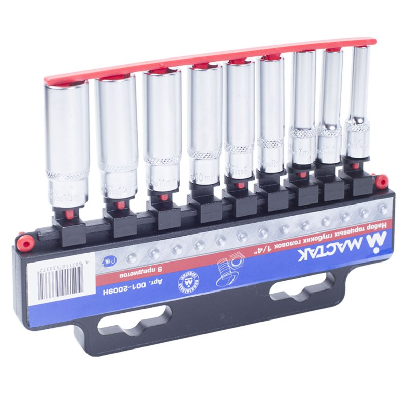 Набор торцевых глубоких головок 1/4, 5-13 мм, 9 предметов МАСТАК 001-2009H купить в Новосибирске цена ✅ - Все для СТО