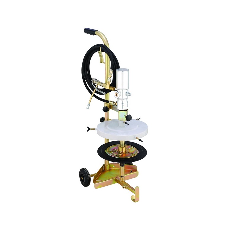 Нагнетатель пневматический, для густой смазки. Комплект оснащен тележкой для бочек 20-60 кг., пневматический насос для смазки 50:1 производительностью 800гр/мин, мембрана и крышка для солидолонагнетателя, шланг 4 м, раздаточный пистолет с наконечником. Колёса: 2 прямых. Масса: 16 кг.