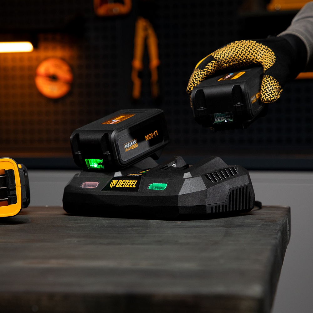 <p>Универсальный литий-ионный аккумулятор Denzel IB-18-4,0 28434 подходит для любой модели инструмента из линейки Denzel IB и всех соответствующих зарядных устройств. Повышенная емкость 4 Ач обеспечивает решение большего объема задач на одном заряде, что значительно экономит рабочее время.</p><h2>Преимущества</h2><ul><li>Отсутствие эффекта памяти — Li-Ion аккумулятор защищен от потери емкости и гарантирует превосходные технические характеристики инструмента на протяжении всего срока службы.</li><li>Защита от перегрузок и короткого замыкания — аккумулятор моментально отключается при превышении допустимого значения по току.</li><li>Защита от перезаряда и глубокого разряда — встроенный автоматический контроллер предотвращает необратимые процессы и выход аккумулятора из строя. </li><li>Термозащита — АКБ автоматически отключается в случае перегрева до полного остывания.</li><li>LED-индикация уровня заряда — мастеру удобно отслеживать, на какое время работы рассчитывать.</li></ul>