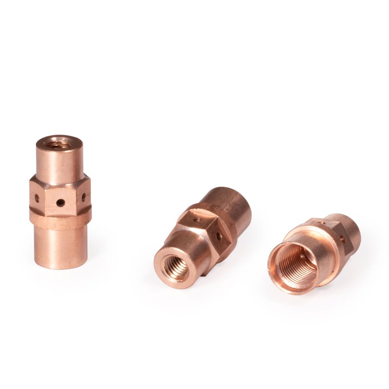 Держатель наконечника – расходный материал для MIG-MAG горелки. Токосъёмный наконечник, с помощью резьбового соединения крепится к держателю наконечника, который в свою очередь прикручивается к гусаку горелки. В ассортименте представлены держатели наконечников с резьбой M6 и M8. Aurora предлагает своим покупателям наконечники из медного сплава с улучшенной токопроводимостью.
