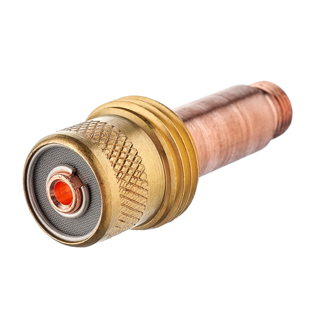 Держатель цанги для газовой линзы диаметром 3,0 мм фиксирует цангу в аргонодуговой горелке TIG. Совместим с горелками серии TP 17/18/26. Совместим только с керамическими соплами для газовых линз.