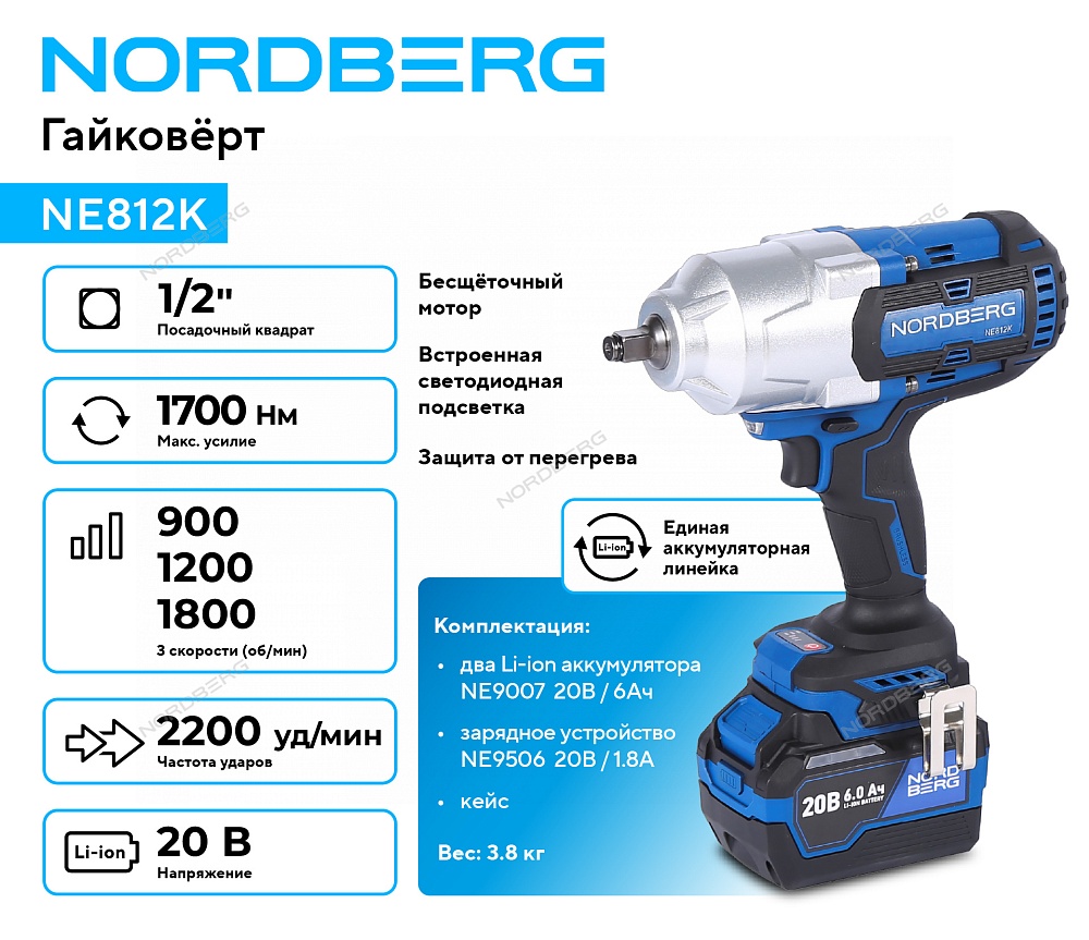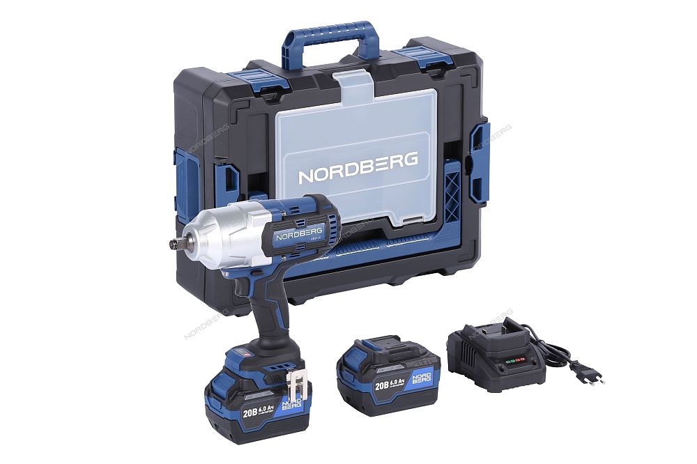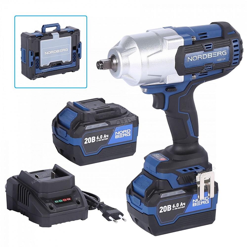 Гайковерт аккумуляторный, 1/2", 21 В, 1700 Нм, 2 аккумулятора 6A и зарядное устройство, в кейсе NORDBERG NE812K купить в Новосибирске цена ✅ - Все для СТО