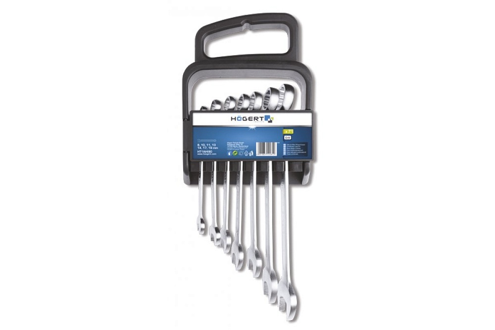 HOEGERT Набор комбинированных ключей 8-19 мм, 7 шт., сталь CrV, DIN 3113 купить в Новосибирске цена ✅ - Все для СТО