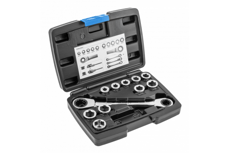 HOEGERT Накидной ключ с трещотками, 11 насадок