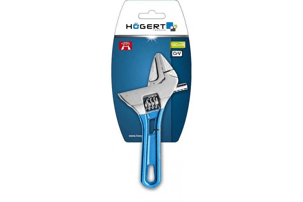 HOEGERT Разводной облегченный ключ с короткой рукояткой 140 мм
