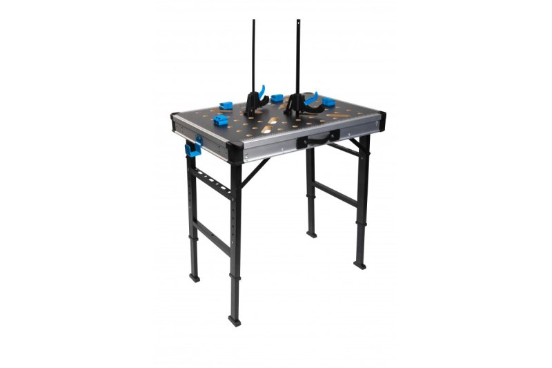 <p class="pt-1">Многофункциональный складной верстак с монтажными отверстиями в столешнице из МДФ и 3 контейнерами обеспечивает универсальность и организацию рабочего места. Контейнеры и отверстия в боковых стойках обеспечивают легкий доступ к винтам, болтам, мелким инструментам и т. д. Благодаря 6-уровневой регулировке высоты стол подходит для пользователей любого роста и предпочтений. Специальные соединители позволяют соединить два стола вместе, чтобы создать большую рабочую поверхность. Использование двух столов в качестве эстакады и одновременно с использованием зажимов обеспечивает стабильную работу с длинными заготовками. Боковые крючки позволяют подвешивать длинные заготовки на двух столах. Упорные штифты позволяют надежно зажимать заготовки. Стол выдерживает нагрузку до 450 кг и подходит для действительно тяжелых работ. Столешница из МДФ прочна и влагостойка. Прочная сталь, из которой изготовлен стол, гарантирует прочность и долговечность инструмента. Складная конструкция обеспечивает компактные размеры для удобного хранения и транспортировки. Небольшие размеры в разложенном состоянии позволяют использовать его в узких местах и углах помещений.</p>