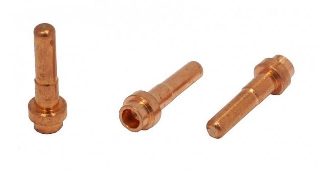 Катод - расходная часть плазмотрона. Оснастку изготавливают из сплава меди и латуни. Данный сплав обладает отличными показателями токопроводимости, высокими прочностными характеристиками, а так же способствует лучшему теплоотводу. Чаще всего для работы в нейтральных плазмообразующих средах в качестве сердечника электрода используют вольфрам, в окислительных средах применяют катоды из циркония или гафния.