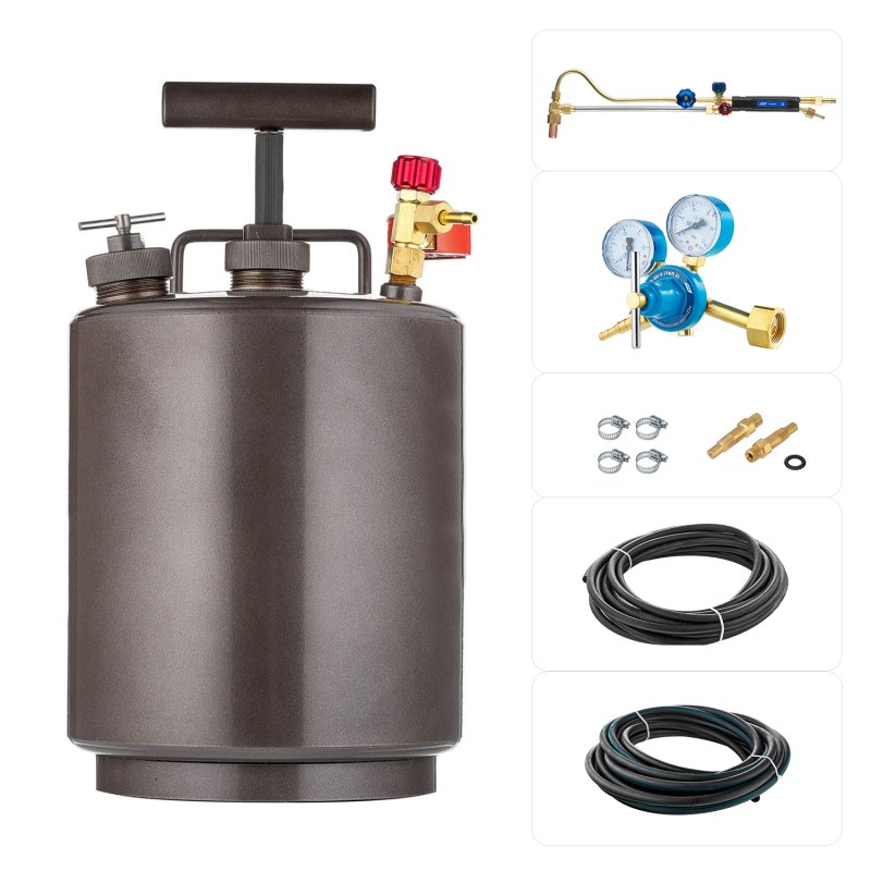Комплект оборудования для бензино-кислородной резки металлов. В комплект поставки входит бачок БГ-08, резак РБ-300, редуктор БКО-50-5 (тип 2) и другие комплектующие для полноценного старта работ.