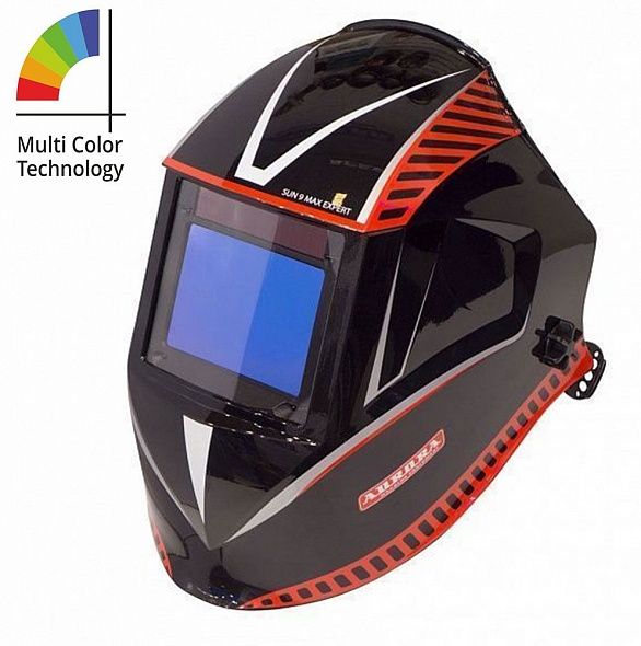SUN-9 MAX EXPERT – новинка 2017-го модельного года в ассортименте AURORA. Новая концепция блока светофильтра - EXPERT - отличается от предшественников улучшенными характеристиками оптического класса 1/1/1/1 по рассеиванию света, однородности затемнения и угловой зависимости; уникальным диапазоном степени затемнения от 3DIN и новой панелью управления на внутренней стороне щитка. Съёмный элемент питания с продолжительным сроком службы, может быть заменён сварщиком самостоятельно, в случае необходимости. Щиток может быть дооснащён увеличительными стёклами. Маска SUN-9 может использоваться вместе с респиратором и устанавливаться на строительную каску.