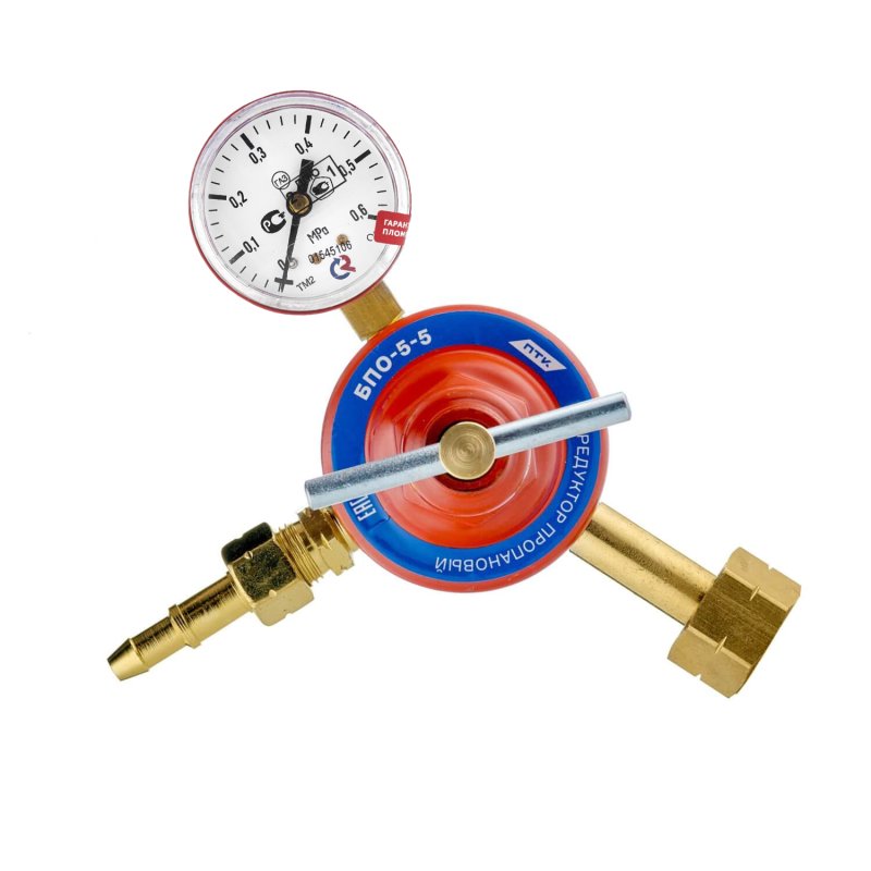 Редуктор пропановый БПО-5-5 с поверенным манометром предназначен для понижения давления газа, поступающего из баллона, и автоматического поддержания постоянным заданного рабочего давления при газопламенной обработке. Производит тонкую настройку рабочего давления.
