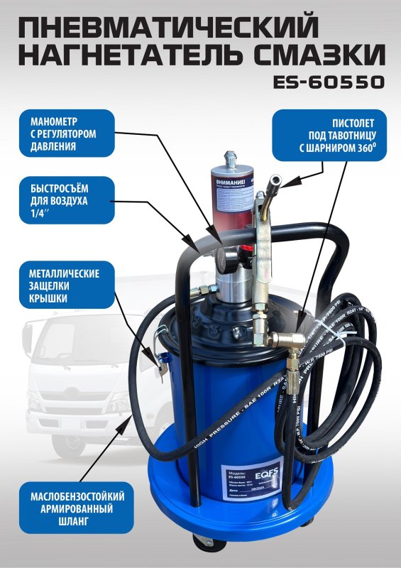 ES-60550 Нагнетатель смазки пневматический купить в Новосибирске цена ✅ - Все для СТО