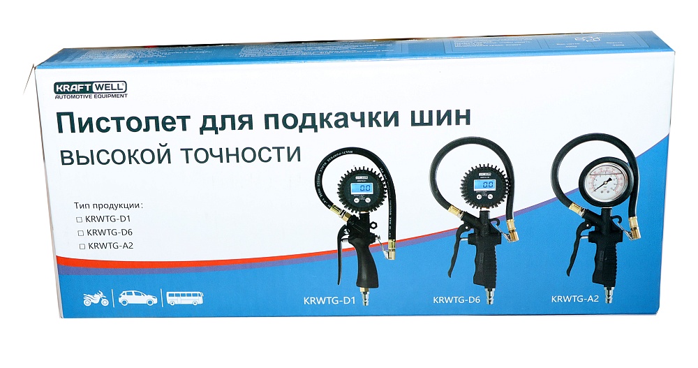 KRWTG-D2 KraftWell Пистолет для подкачки шин. В цветной коробке. Цифровой манометр. Давление до 18 бар.