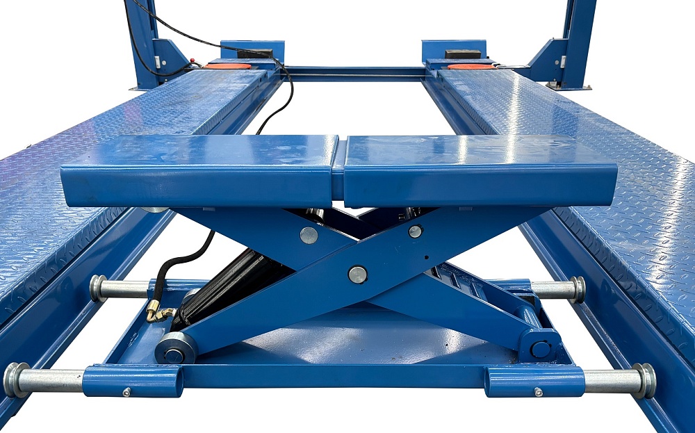 Электрогидравлический платформенный 4-х стоечный автомобильный подъёмник для автосервиса.